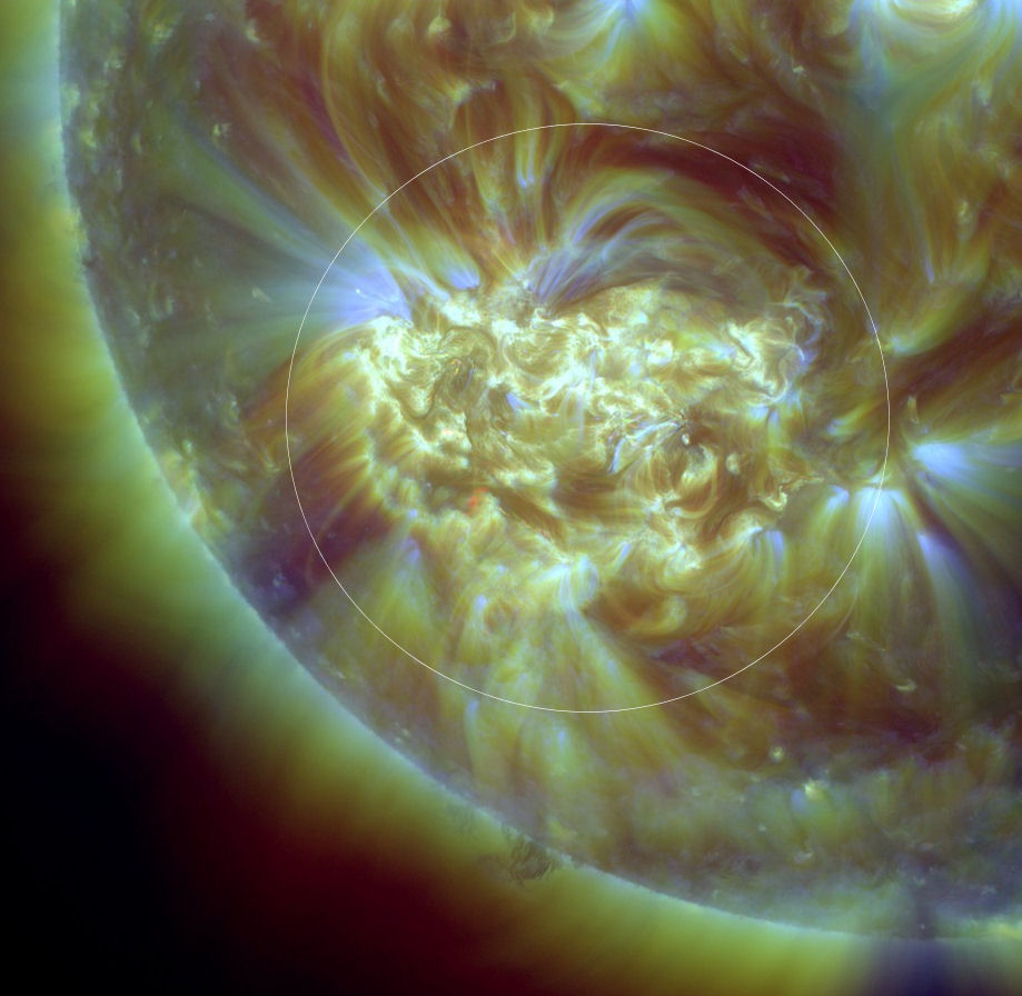 L'intricata struttura magnetica del gruppo di macchie solari è stata ripresa anche in un'immagine nell'UV estremo dall'osservatorio della NASA Solar Dynamics Observatory ed evidenzia la presenza di consistente energia potenzialmente adatta per generare forti brillamenti solari.